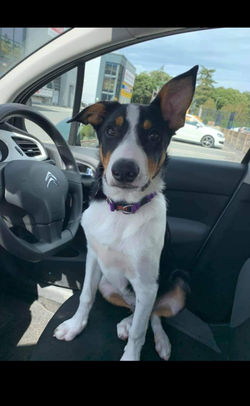 Benji is a loving, relaxed dog at home, he is very affectionate with the people he loves, and likes nothing more than to be cuddled up in bed on a rainy day with toys and chews! Benji's favourite things to do are to go on long walks, including mountains, forests, beaches and most importantly, he loves a dip in the sea/ lake to cool off whenever the opportunity arises!