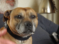 All about Honey & Barley: Honey & Barley are female and male Staffordshire Bull Terriers of 11years.