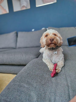 Winston enjoys his walks and chasing a ball, but he is just as happy sitting next to you on the settee (especially in the evenings).